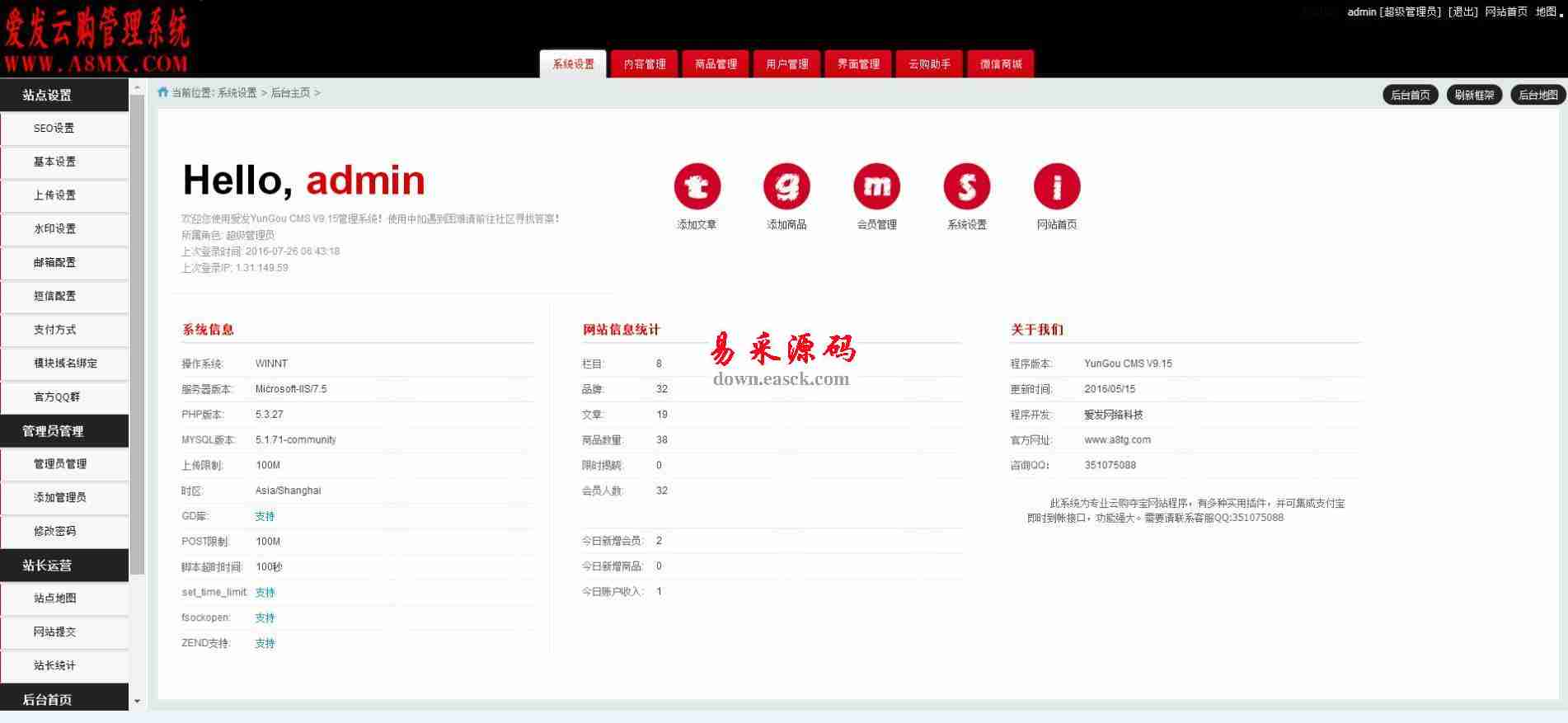 14. 系统管理(系统参数配置、推广图设置、热门关键词、管理员列表、新增管理员、权限设置)