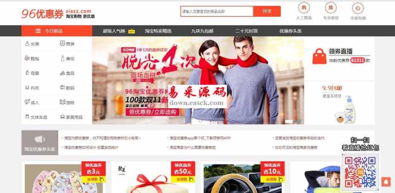 仿九块邮免费淘宝客程序 v6.026.87 .MB101人下载杨他他淘宝客采用thinkphp框架开发,程序与模板分离,便于二次开发与管理,此次免费分享版提供一套仿九块邮模板,后台自带商品采集功能,用户只需要在后台填写自己的淘点金代码