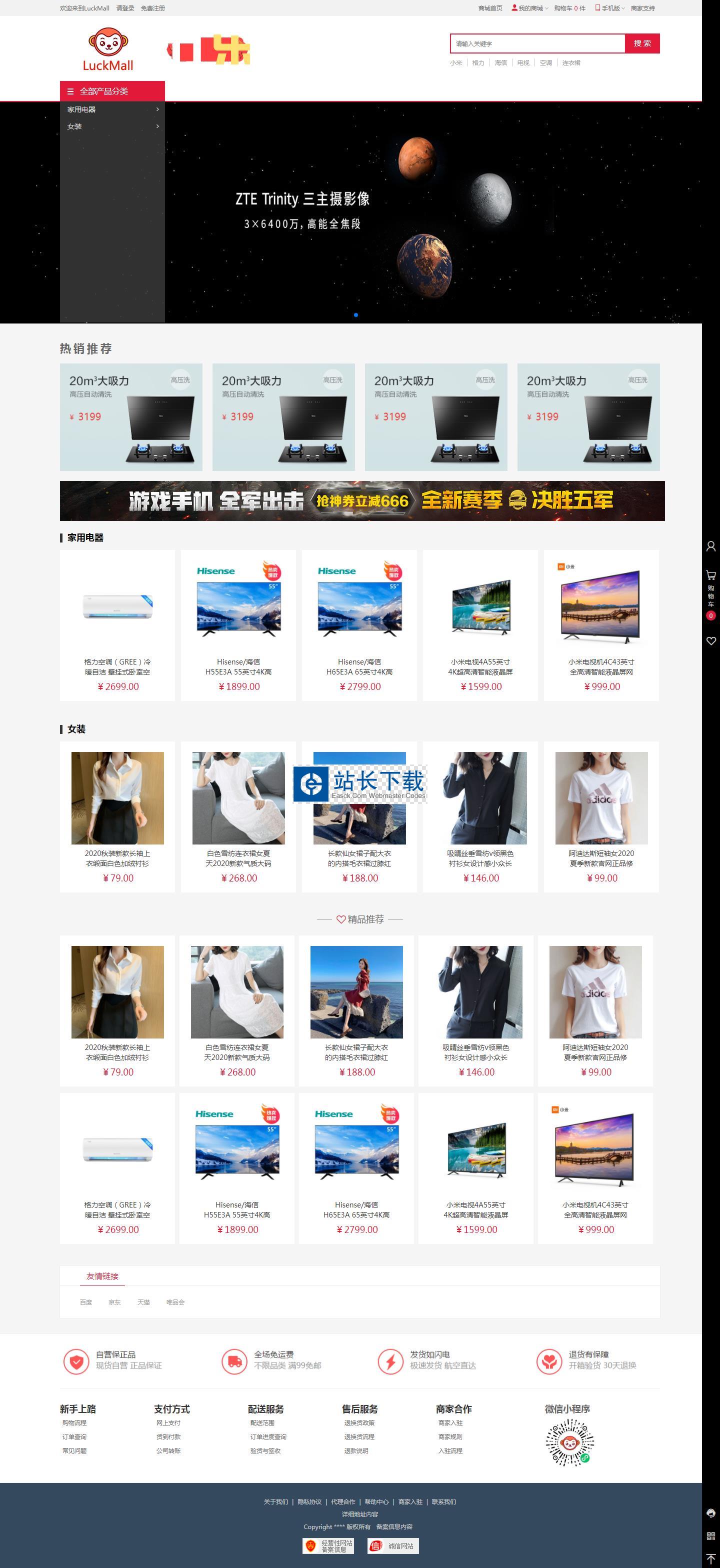 S-CMS电子商城系统(含微信小程序) v3.0 bulid2018121112.11 MB102人下载S-CMS电子商城系统(双语带手机版))以php+mysql进行开发,网站安装简单、快捷。 程序特色: 一、使搜索引擎更加容易抓取和索引 二、提供更多的功能,提高用户的友好体验 三、可用性