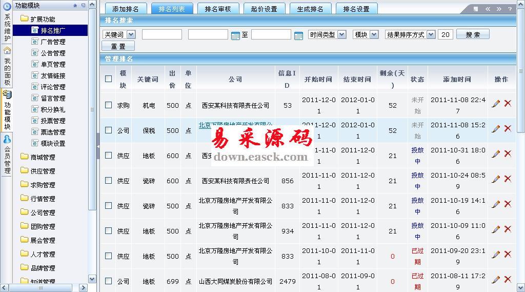 Cmseasy 可视化编辑商城系统也称企业网站程序,系统前台生成html、完全符合SEO、同时有在线客服、潜在客户跟踪、便捷的企业网站管理、搜索引擎推广等功能。