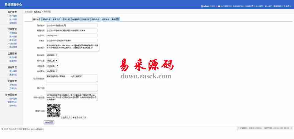 自动发卡平台源码 v2.0 1014 KB101人下载该软件是一个以php+MySQL进行开发的个人版自动发卡网站源码。网站功能:1、支付接口2、换购率设置3、商品管理4、订单管理5、smtp设置6、修改密码使用说明:自动发卡平台源码可以放入任何站点安装徐大大个人自动发卡平台http://您的域名/install.php后台地址ht