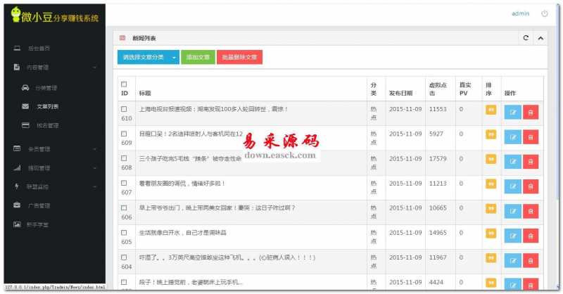 2.优化:后台文章和商品新增了排序功能,方便管理
