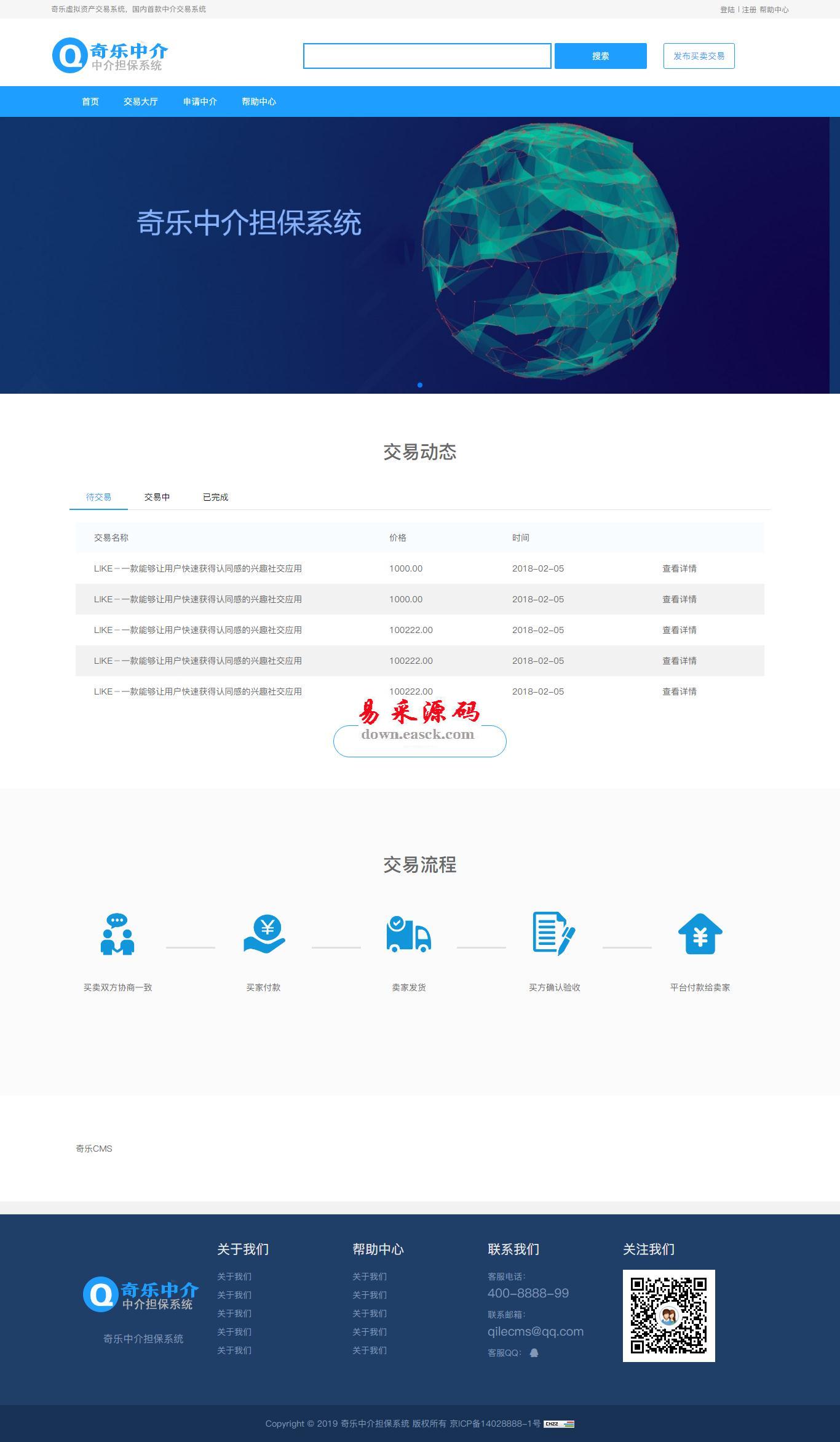 奇乐中介担保系统免费版16.66MB101人下载奇乐中介担保交易系统是国内首款中介担保交易系统,旨在为广大用户提供更加安全高效的虚拟资产担保平台。奇乐中介担保系统安装说明:1、访问首页安装程序.后台地址 /admin.php2、系统默认支持 linux+apche ,如果页面无法打开说明你用的是nginx 或者iis,请到官方论坛寻找配置方法奇乐中介担保系统升级说明:1、修复会员中心支付宝充值不显示的问题