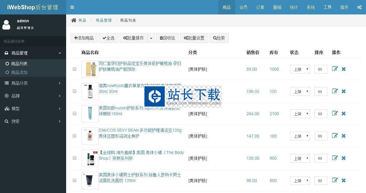 2.优化:后台文章和商品新增了排序功能,方便管理