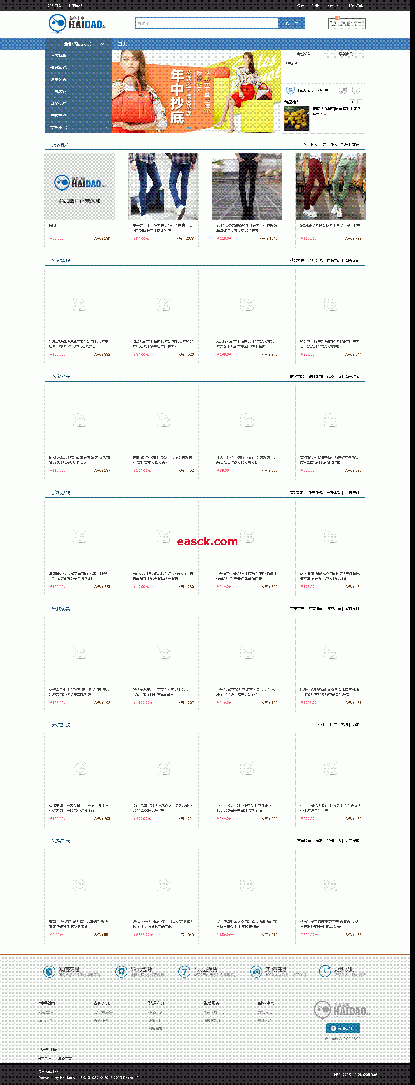 飞娃B2B2C商城电商系统 v1.0.0飞蛙B2B2C(FeiWa B2B2C)商城系统是山东破浪网络科技有限公司于2017年最新推出的企业级B2B2C电商平台系统,采用PHP5+MySQL技术为基础,OOP(面向对象)方式进行核心框架搭建,结合MVC模式进行开发,可以支持Windows/Unix服务器环境,需PHP5.3及以上版本支持,可运行于包括Apache、IIS和Nginx在内的多种WEB服务器。飞蛙B2B2C(FeiWa B2B2C)商城是迄今为止功能强大的商城系统,可支持分销、视频直播、产品库等前沿功能的B2B2C电商系统,全面支持PC、WAP、微信、APP等终端设备,支持屏购机、智能电视等多媒体设备。实现多屏购物、分销等,给消费者带来全新的购物体验。飞蛙商城系统特性:FeiWa B2B2C借鉴了国内外优秀的开源程序与开发模式,使用面向对象的开发结构、MVC模式、单一入口、ORM影射等。封装了CURD和一些常用操作,在安装部署、数据查询、数据缓存、数据验证、模型处理、视图与布局、路由处理、SEO支持、大数据支持等方面表现稳定。1、MVC设计FeiWa B2B2C 商城融合了MVC模式进行开发,系统开发高效,各个节点结构更加清晰。模型(M):模型的定义由 Model 类来完成。控制器(C):由框架核心和Action共同完成。视图(V):由 Tpl 类和模板文件组成。MVC作为一种模式只是提供了一种敏捷开发的手段,FeiWa系统融入MVC模式但不拘泥于 MVC 本身。2、缓存机制FeiWa B2B2C商城支持包括文件缓存、数据表缓存以及从种内存缓存(Redis、APC、Memcache、eAccelerator和Xcache),用户可跟据实际运行环境自行设置。3、调试模式系统提供了调试模式,可用于开发过程的不同阶段,包括开发、测试和演示等情况,满足调试开发过程中的日志和分析需要,确定将来系统以最佳的方式进行部署。4、查询机制丰富系统内建丰富的查询机制,包括组合查询、复合查询、区间查询、统计查询、定位查询、多表查询、子查询和原生查询,使用数据查询简洁高效。5、动态模型系统中无需创建对应的模型类、即可轻松完成CURD操作,使数据库操作更加简洁。6、支持字段检测系统支持缓存字段信息,支持非法字段过滤和字段类型强制转换,确保数据操作的安全性。7、高效的搜索机制系统引入第三方搜索引擎,使用内存缓存、文件缓存、数据表缓存相结合,最大化减少搜索给系统带来的影响。8、易用性LAMP架构保证跨平台、MVC模块化开发保证易维护与扩展、系统架构保证集群部署与扩展。9、高安全目录读写分离,框架层验证与过滤、多层级口令保护、完善的角色与权限控制。10、大数据缓存集群、数据库集群、存储集群(或分布式)和WEB集群支撑大数据。11、高并发高可用数据缓存、动静分离、集群(或分布式)部署支撑高并发,数据库集群、存储集群、宕机检测支撑高可用。演示地址买家管理中心:/member/index.php?app=login 买家登录名:buyer 密码:123456演示地址卖家管理中心:/mall/index.php?app=seller_login 买家登录名:seller 密码:123456 飞娃B2B2C商城电商系统v1.0.0