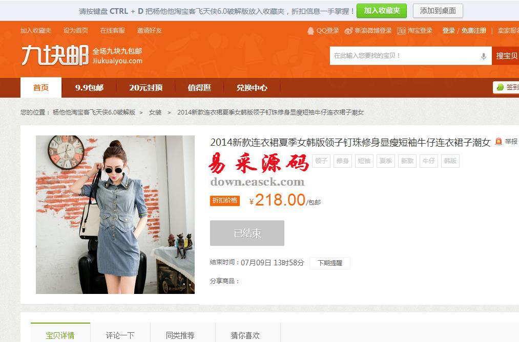 仿九块邮免费淘宝客程序 v6.026.87 .MB101人下载杨他他淘宝客采用thinkphp框架开发,程序与模板分离,便于二次开发与管理,此次免费分享版提供一套仿九块邮模板,后台自带商品采集功能,用户只需要在后台填写自己的淘点金代码
