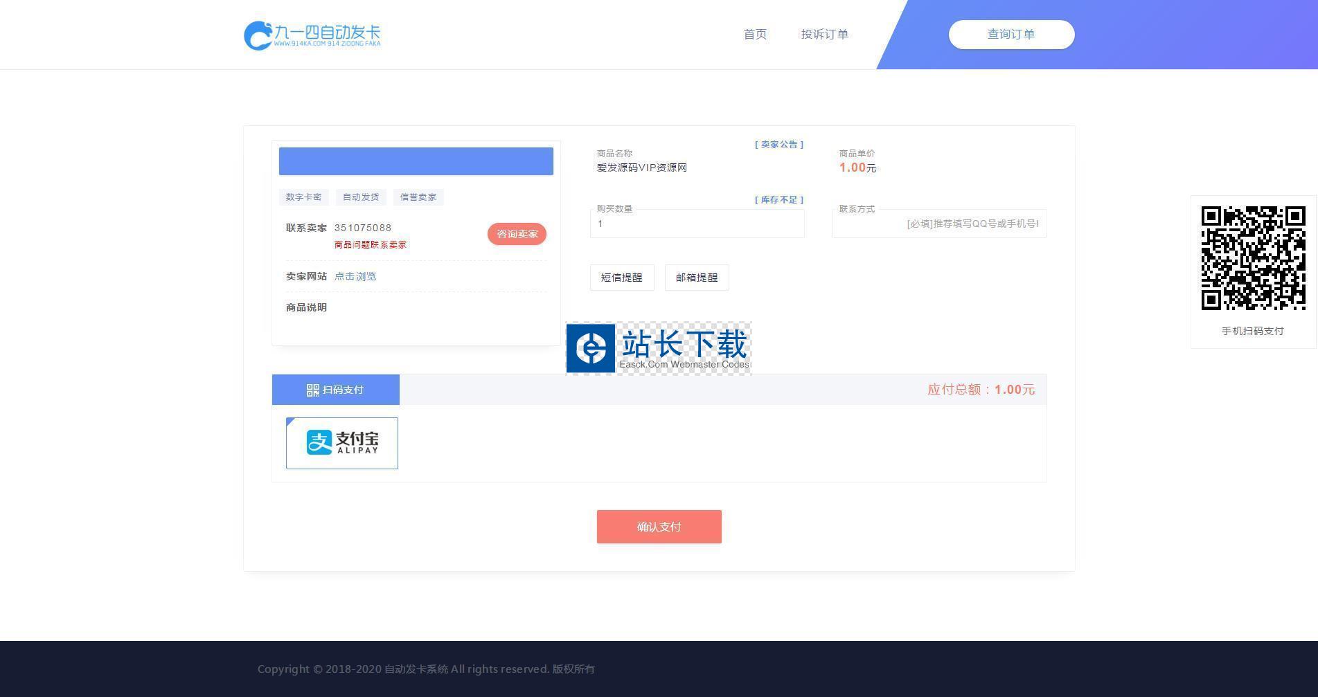 自动发卡平台源码 v2.0 1014 KB101人下载该软件是一个以php+MySQL进行开发的个人版自动发卡网站源码。网站功能:1、支付接口2、换购率设置3、商品管理4、订单管理5、smtp设置6、修改密码使用说明:自动发卡平台源码可以放入任何站点安装徐大大个人自动发卡平台http://您的域名/install.php后台地址ht