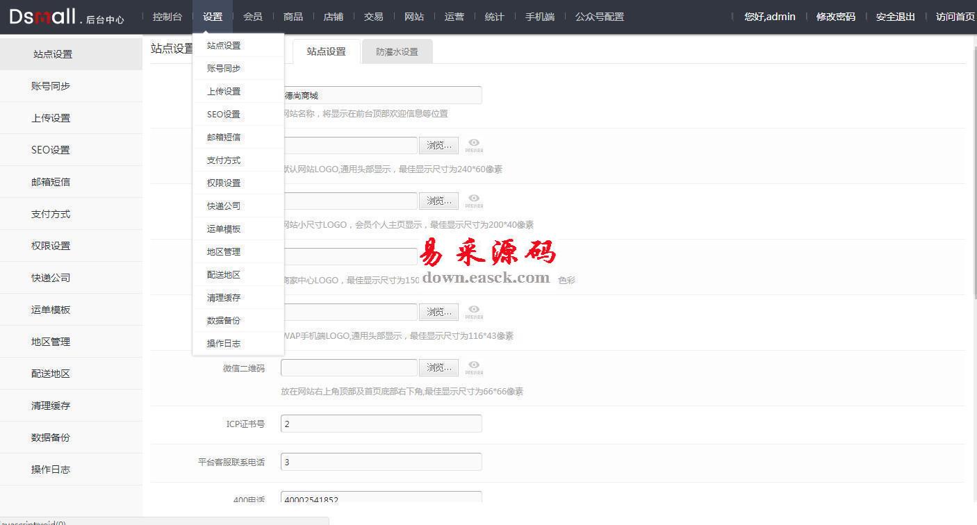 DSShop单用户TP5框架B2C开源商城源码 最新版33.31MB102人下载 DSShop商城系统是一套完善的B2C(单用户商城)解决方案。系统pc端后台使用国内优秀开源框架THinkPHP,基于PHP+MySQL开发,采用B/S架构,wap端使用vue.js构造,依据6年电商经验打造出的一套开源的B2C电子商务系统。
