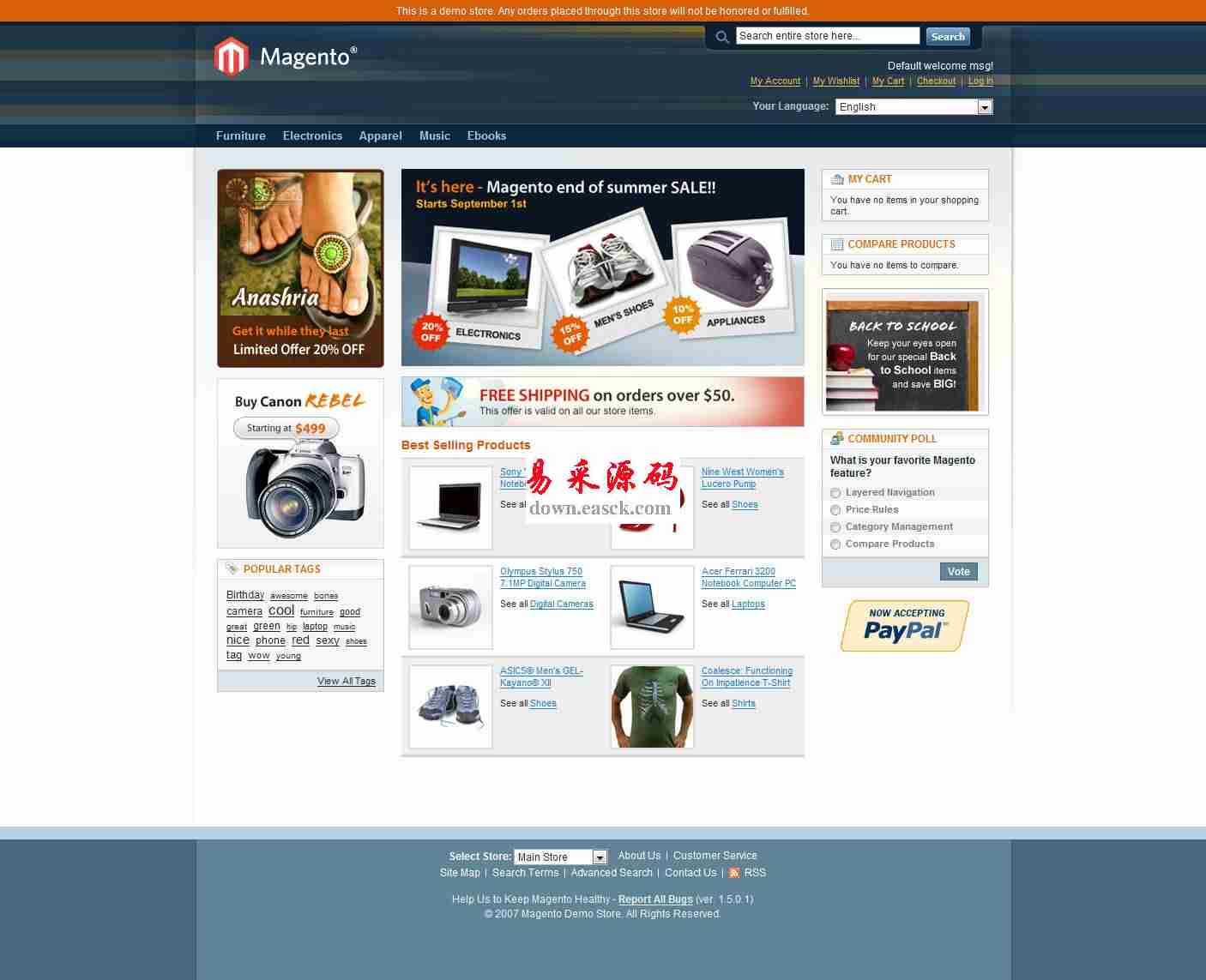 S-CMS电子商城系统(含微信小程序) v3.0 bulid2018121112.11 MB102人下载S-CMS电子商城系统(双语带手机版))以php+mysql进行开发,网站安装简单、快捷。 程序特色: 一、使搜索引擎更加容易抓取和索引 二、提供更多的功能,提高用户的友好体验 三、可用性