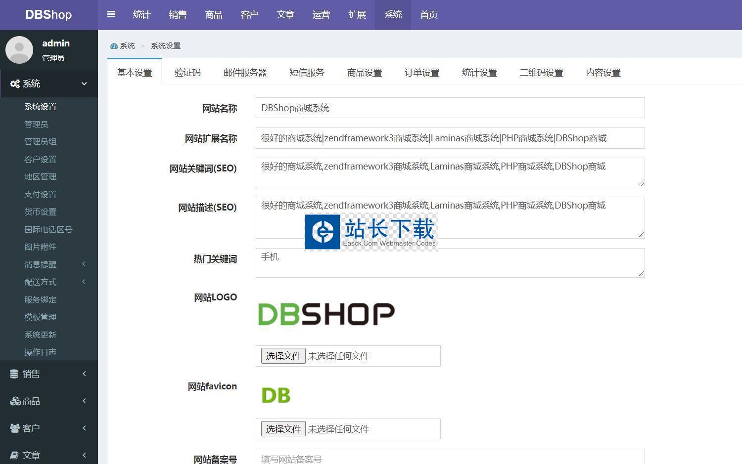 系统管理(系统参数配置、推广图设置、热门关键词、管理员列表、新增管理员、权限设置)