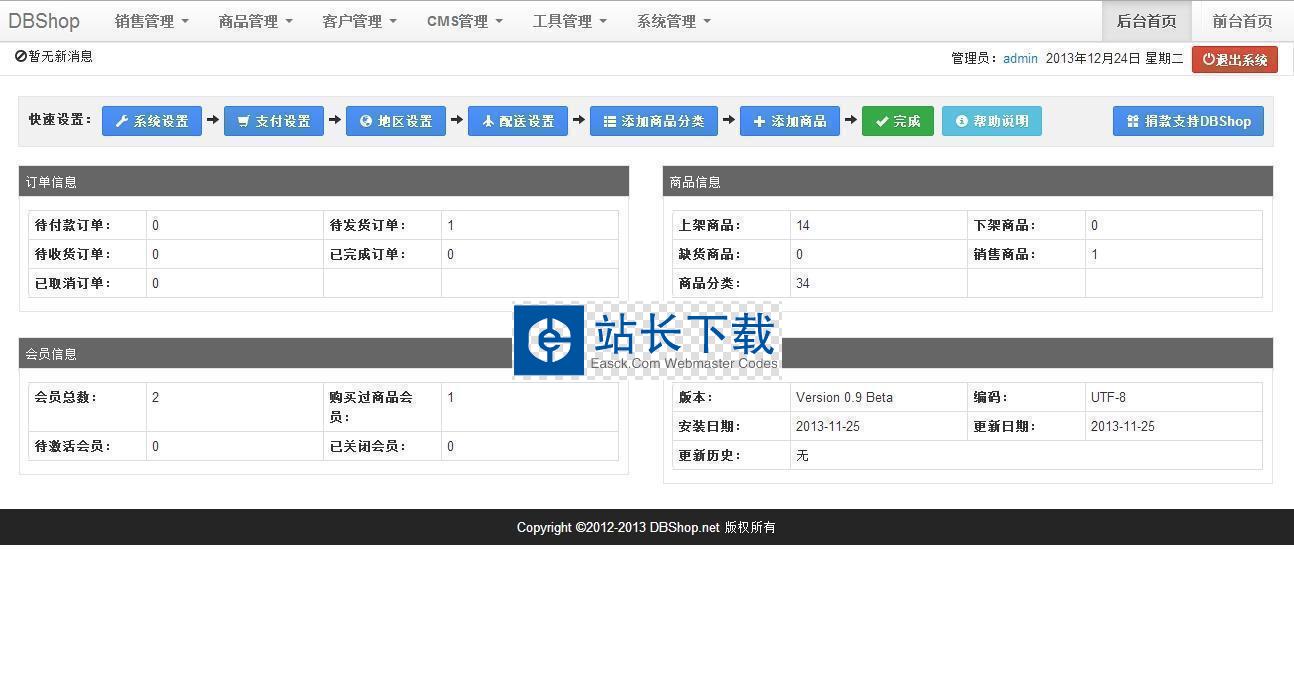 DSShop单用户TP5框架B2C开源商城源码 最新版33.31MB102人下载 DSShop商城系统是一套完善的B2C(单用户商城)解决方案。系统pc端后台使用国内优秀开源框架THinkPHP,基于PHP+MySQL开发,采用B/S架构,wap端使用vue.js构造,依据6年电商经验打造出的一套开源的B2C电子商务系统。