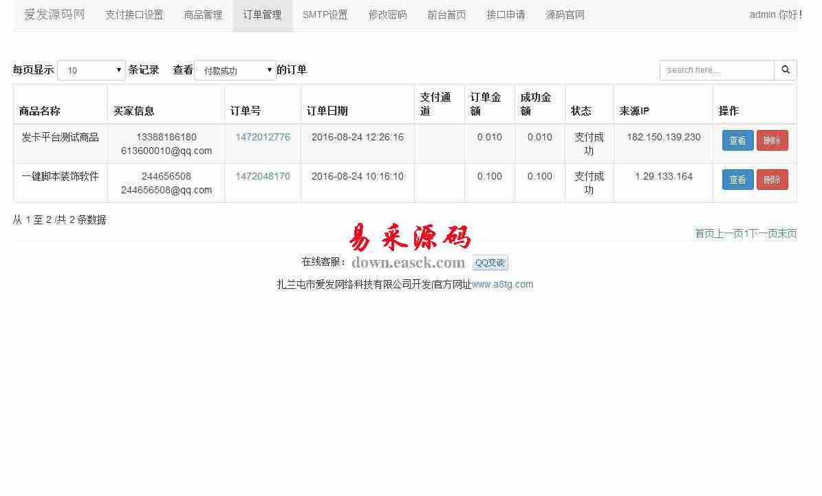 自动发卡平台源码 v2.0 1014 KB101人下载该软件是一个以php+MySQL进行开发的个人版自动发卡网站源码。网站功能:1、支付接口2、换购率设置3、商品管理4、订单管理5、smtp设置6、修改密码使用说明:自动发卡平台源码可以放入任何站点安装徐大大个人自动发卡平台http://您的域名/install.php后台地址ht